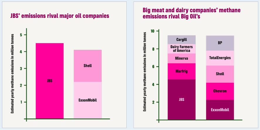 JBS emits more methane than reported for ExxonMobil and Shell combined.